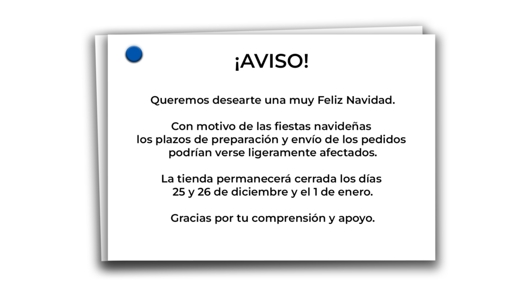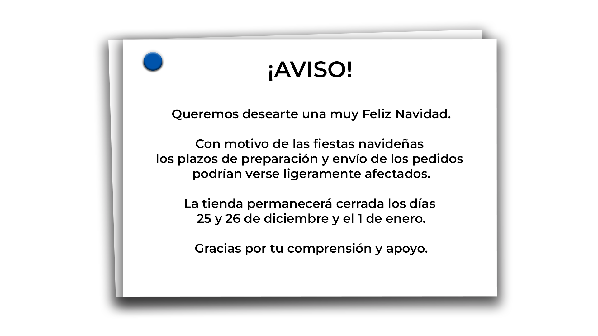 Nuestro tiempo de producción es de un máximo de 24 horas laborables. Los pedidos realizados después de las 13:00h se enviarán el siguiente día laboral.